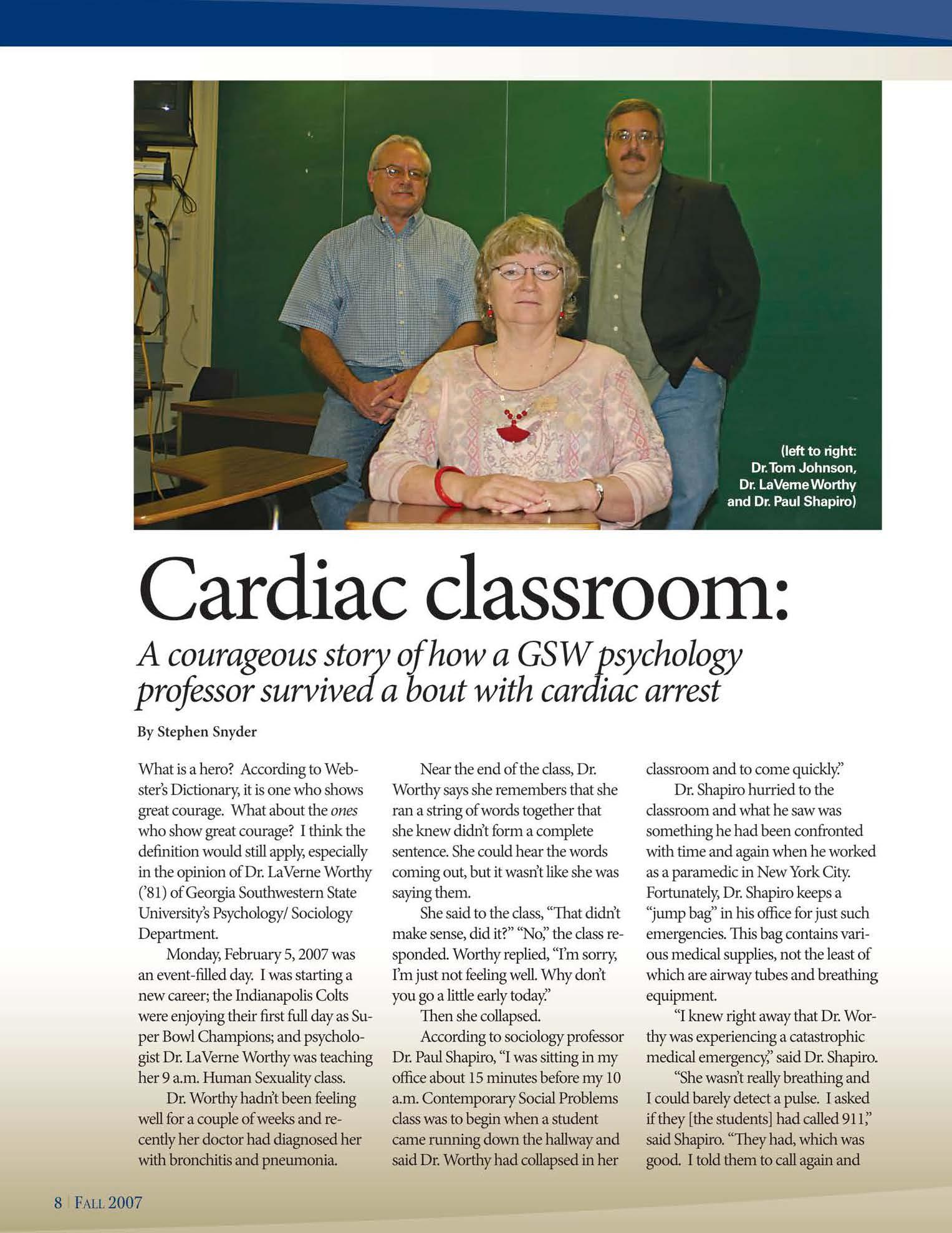A courageous story of how a GSW psychology professor survived a bout with cardiac arrest