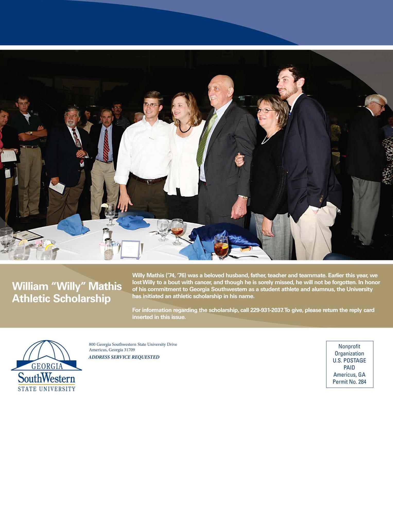 W "II" "Will ,, M th• lostWilly to a bout with cancer, and though he is sorely missed, he will not be forgotten In honor I 1am Y a IS of his commitment to Georgia Southwestern as a student athlete and alumnus, the University Athletic Scholarship has initiated an athletic scholarship ,n his name SouthWestern STATE UN I VERS IT Y