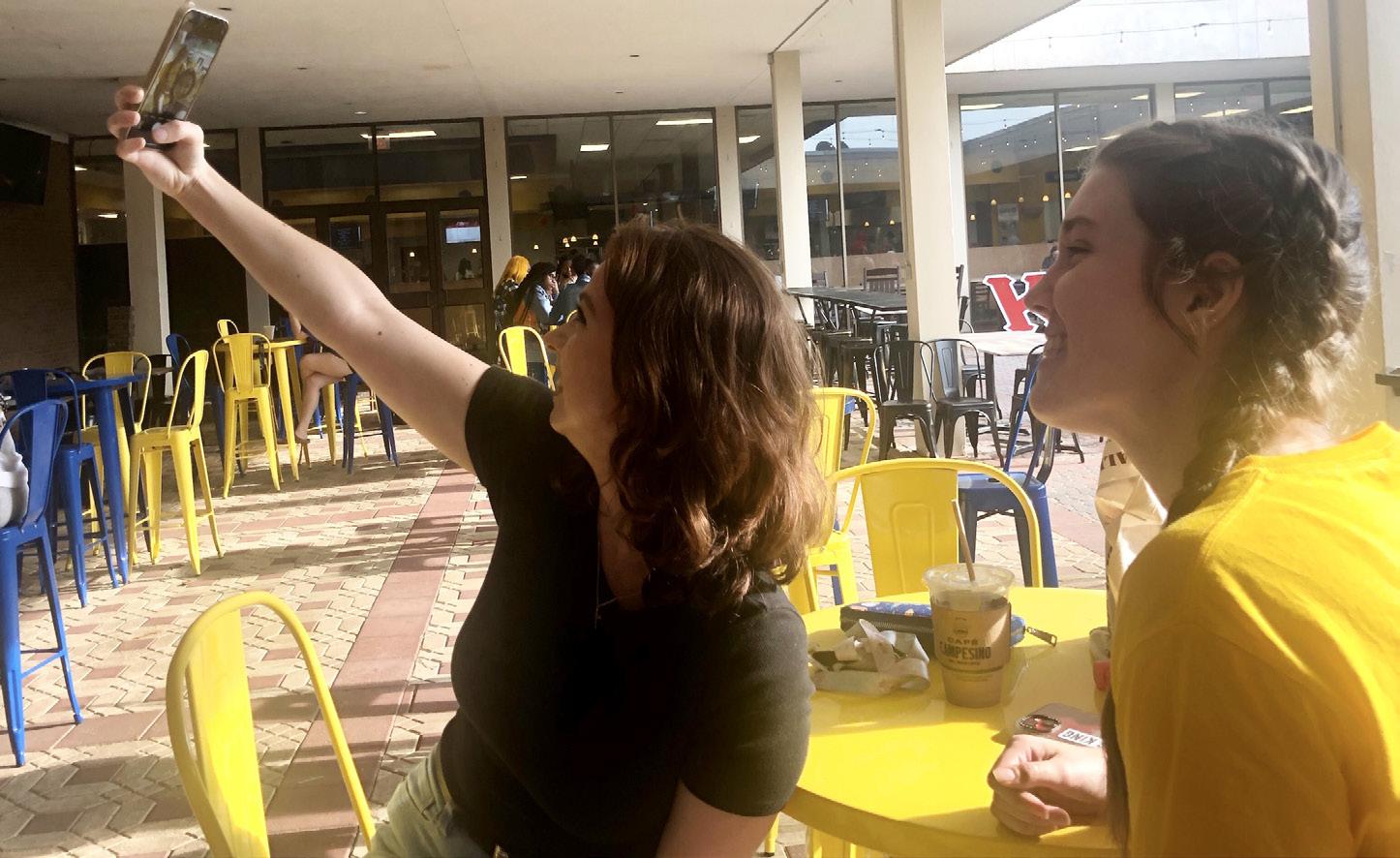Freshmen Payton Sapp and Leah Ross taking a selfie.