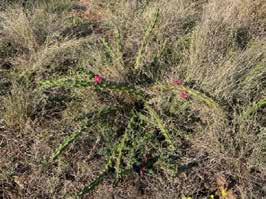 To measure how effective the mealybug is at controlling Harrisia, NSW DPI staff have established a long-term impact study on the biocontrol agent. Its impact is being assessed at two sites, each of which have a release areas and biocontrol-free control sites nearby (Figure 2 - Healthy fruiting Harrisia cactus growing among lightly grazed native grass at one of the control sites - mealybug-free).