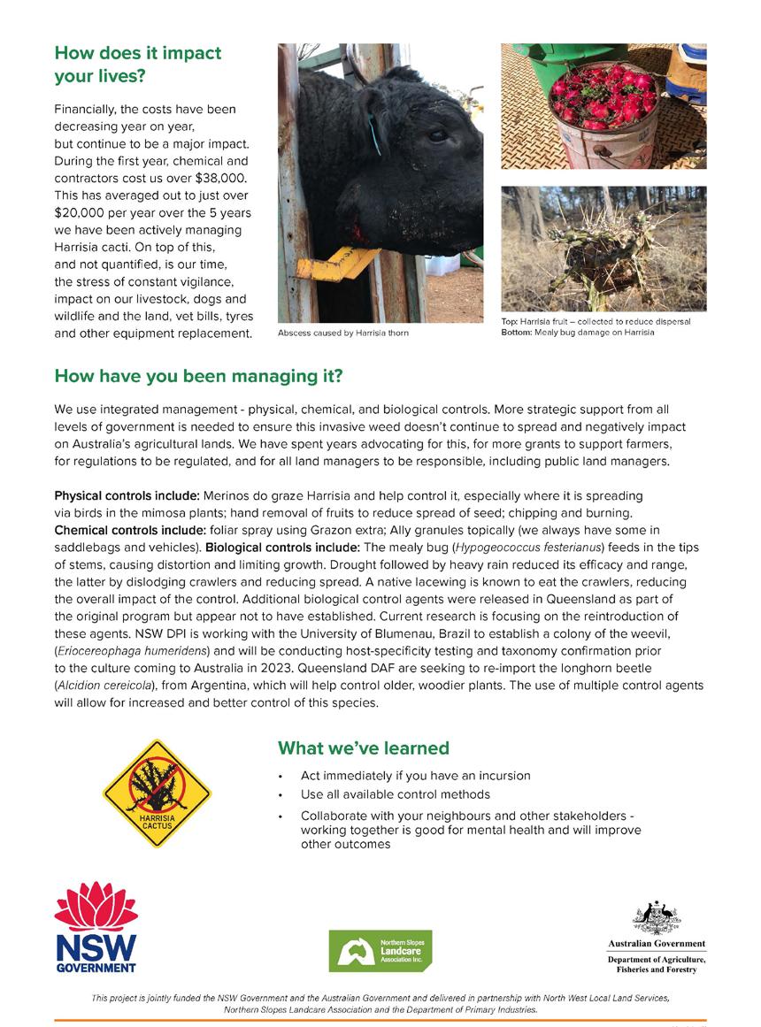 “If you live in an incursion area or are concerned about the potential of Harrisia please contact me”.