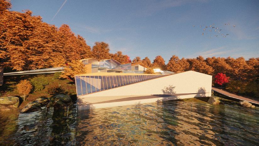 The great platform shuttling between the different parts of the project emphasizes the movement characteristic. The platform starts from the trail and ends in the center of the water, connecting different programs. When people walk on the platform, they can be easier to enjoy the beautiful landscape and integrate themselves into the nature. Twists and turns in the form let people have a new perspective and experience every time they move. The changing sight ends in the water, the most exciting part of the project, where people can relax completely and be completely