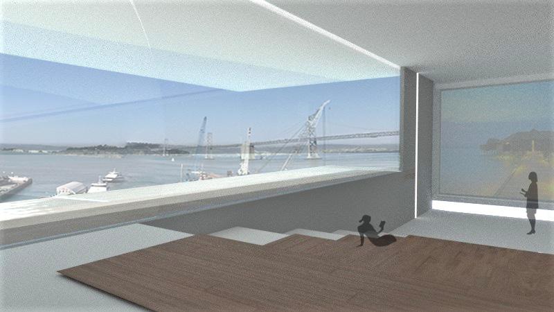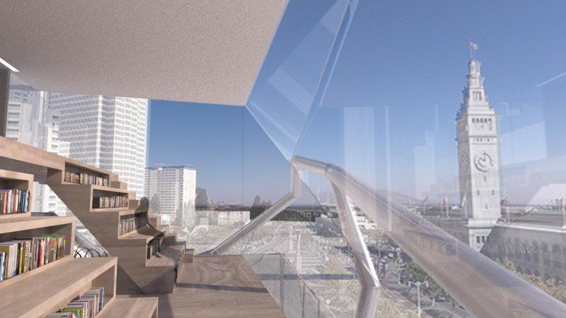 The exterior Islamic patterns and the interior patterns not only help to decorate but also serves as structural framework of the building, making the interior floor without columns possible. The design of the library utilizes the beautiful view outside. The stairs serve as the bookshelves, making the books more accessible and students can sit on the stairs to enjoy the great view. The multimedia room create a “Zen” space. Through the window between the library and the multimedia room, the view of the San Francisco Bay is carried into the interior. The design is a practice of the Islamic Pattern into the modern architecture, making the two-dimensional pattern into three-dimensional, creating space inside and designing a sustainable building, which is also important for this era.