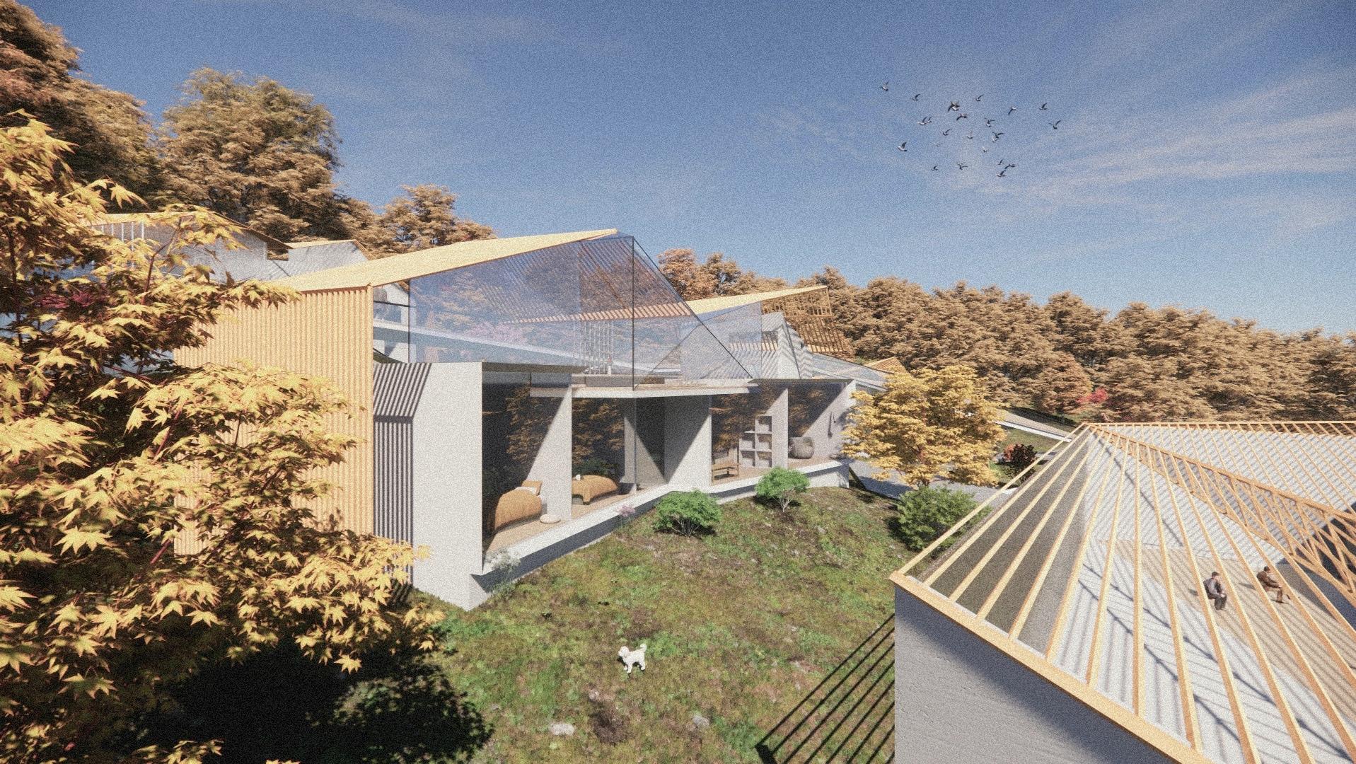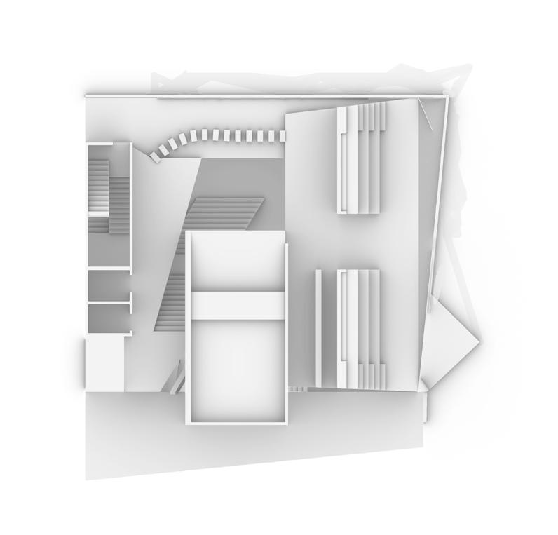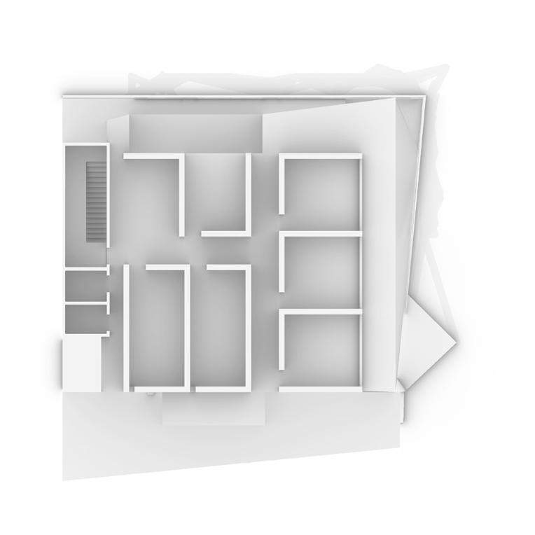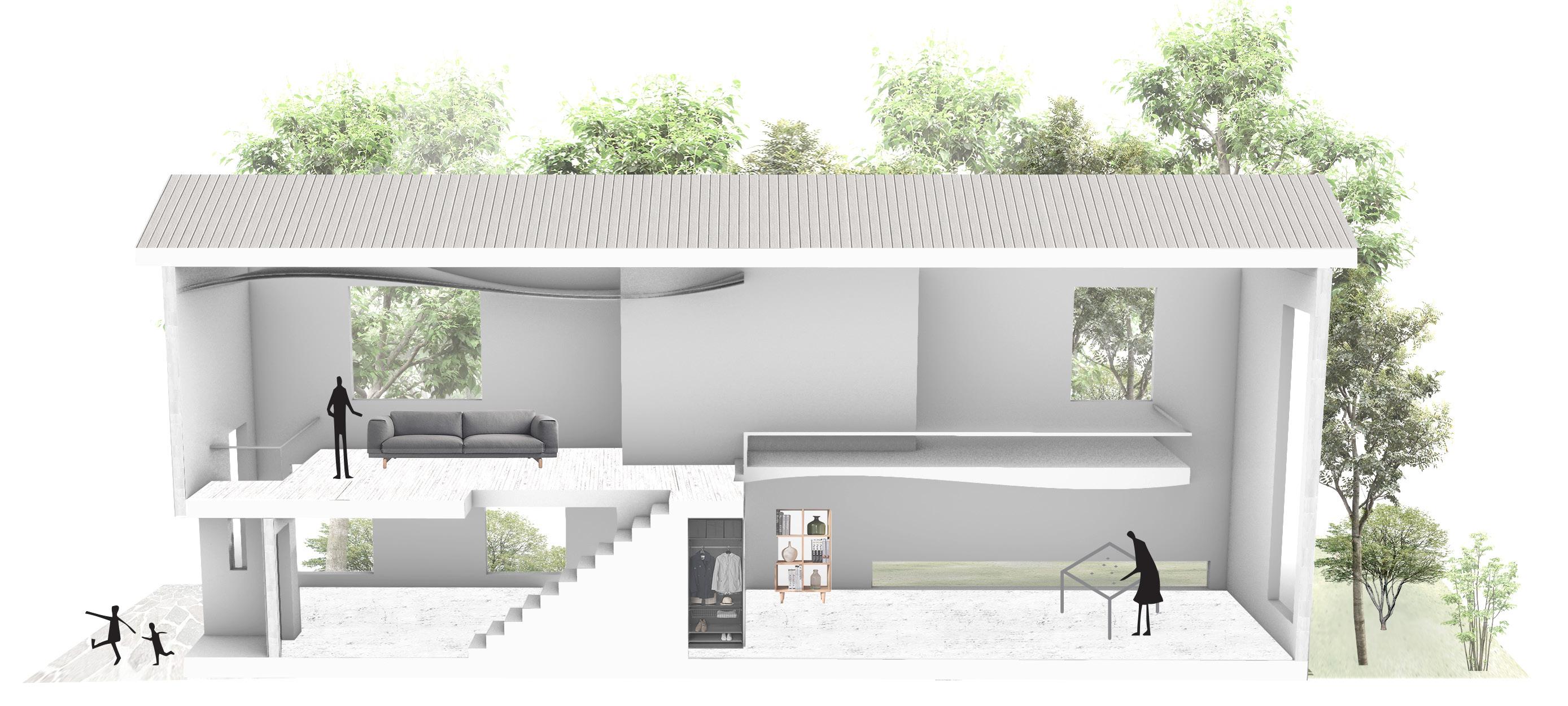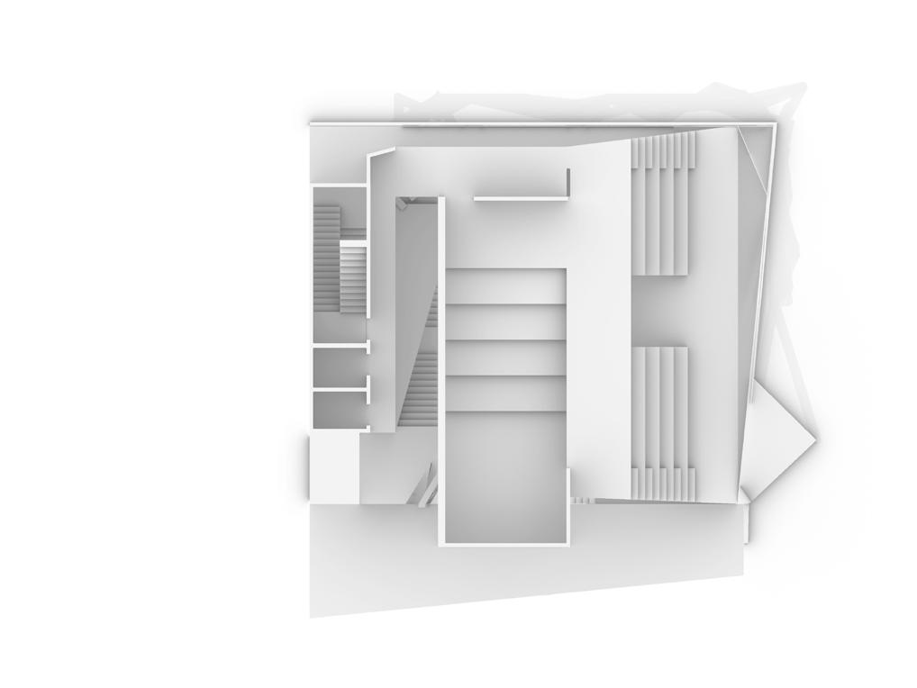 The last step is lifting the mass, to make the first floor of the building more transparent and create a corridor connecting the garden with the entrance. The process generates two gardens. One of them is the secret garden behind and another one is the garden on the roof. One of them is inward and another one is outward with the view of the city around the architecture, the “real world”