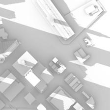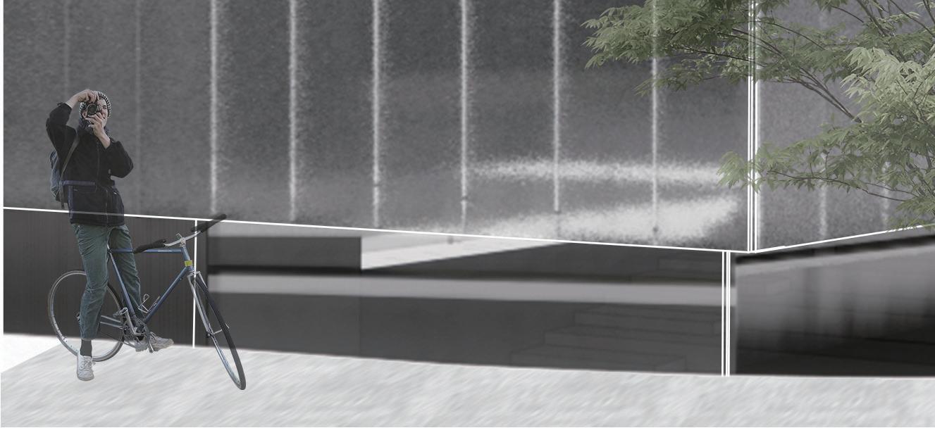 The bus stop is composed by two main space, theater space and shelter space. The theater space is rotated a little bit for the waiting people to have a better view of the coming bus and the vanishing point of the end of the road, a great city view.