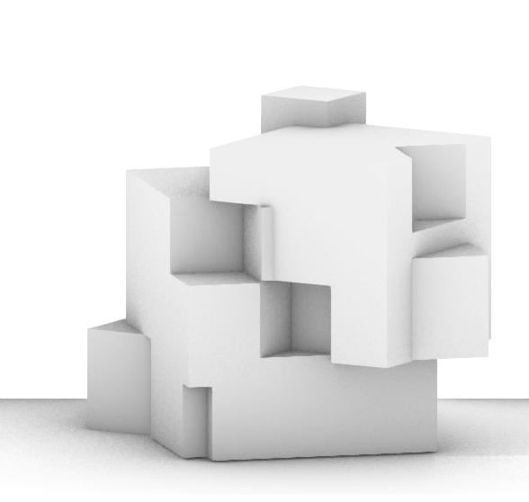 In the exercise A, I tried to build the concept of a roof garden and used a 3 * 3 square as the entrance and exit of the garden. The deletion on both sides of the model was imagined as balconies. Two deletions on the lower side of the second main block create a shady space at the bottom of the building. The diversity of building facade also increases the vividness and structural sense of the building. In the exercise B, I rotated parts of the model. In order to make the model after rotation still have unity and order. I changed the position of a few of the squares a little in order to make the