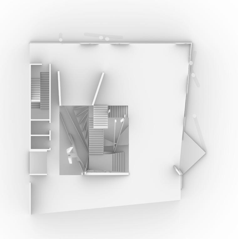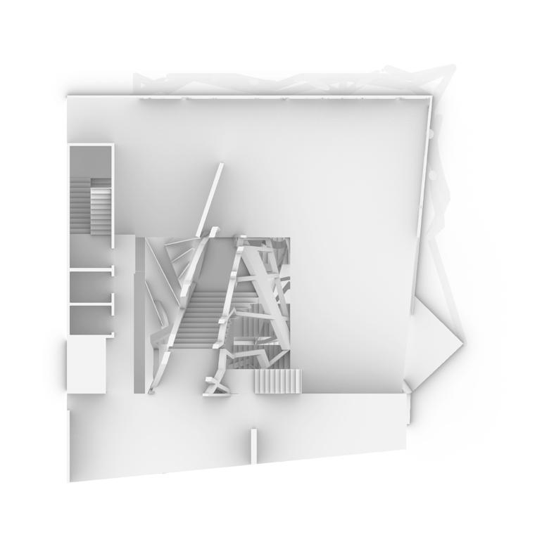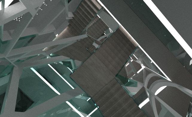 The stair is also a gallery. With the platforms generating out of the stair, the artworks can be displayed on them. When people move on the stairs, they can view the artworks from different perspectives.