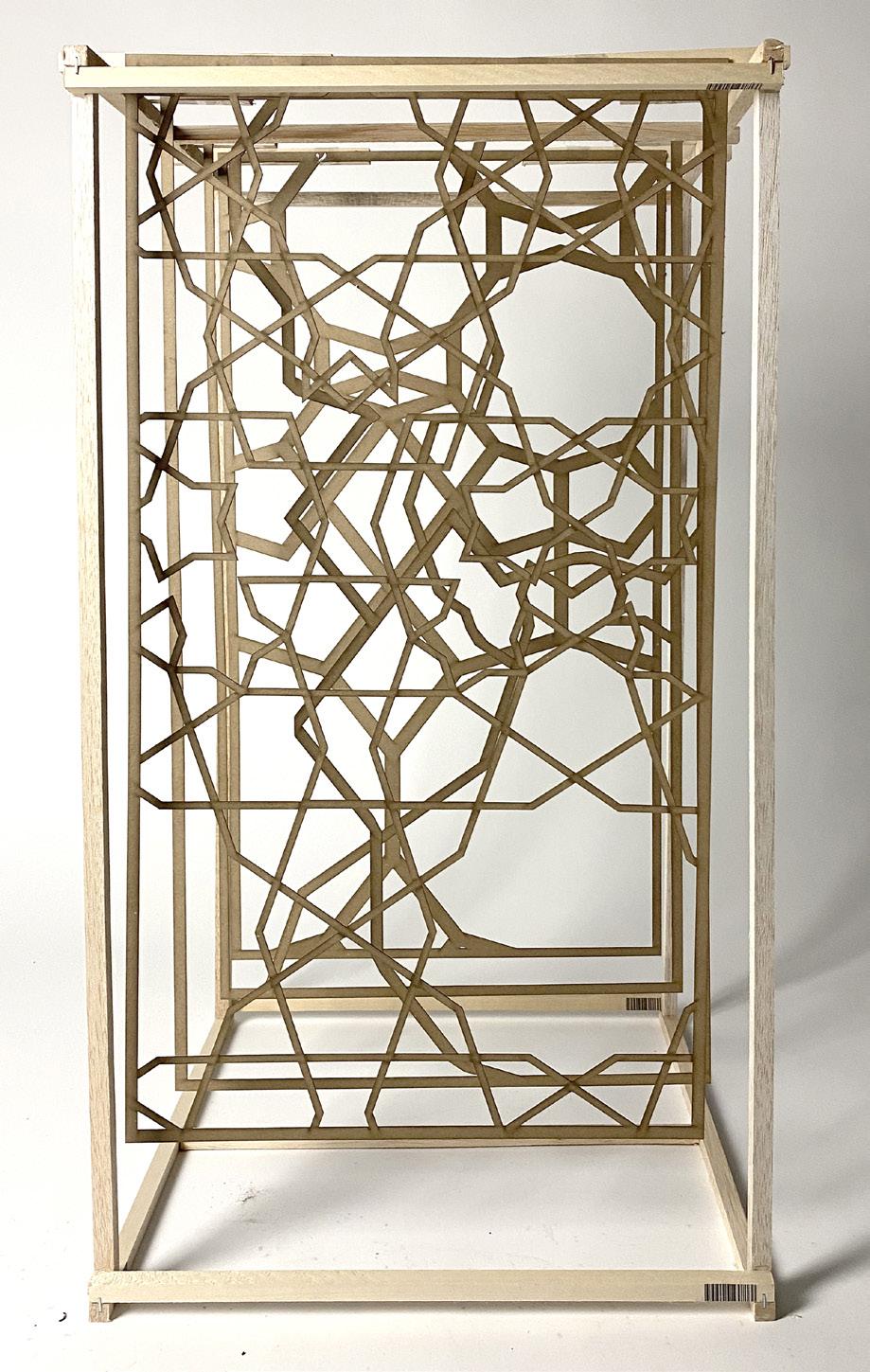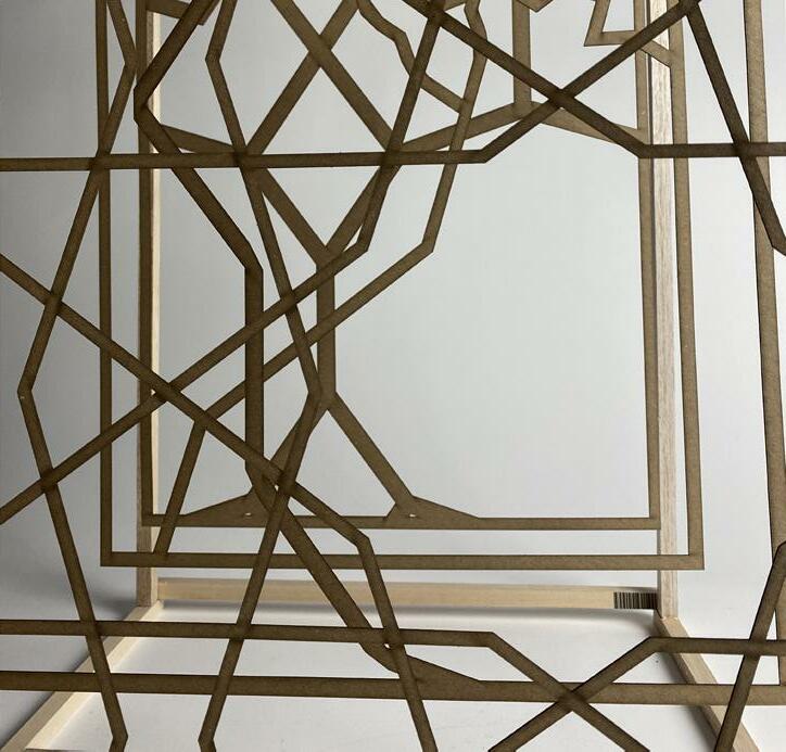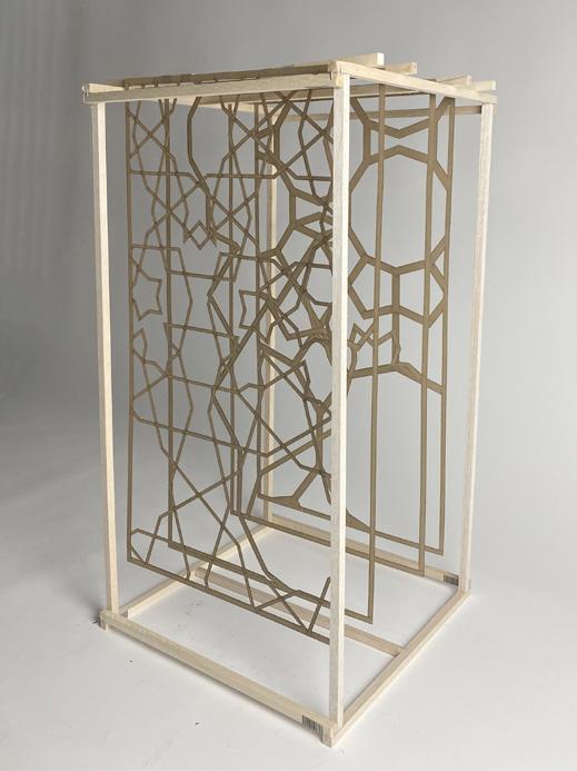 The first and the sixth picture shows the entire view of the model and the other show the detail feature. The light comes through the gaps of the Islamic patterns, making the space between the panels viable and dramatic.
