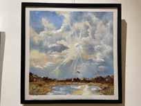 Olivia Masumova’s eight oil paintings are collectively called “The Light Inside”. Each of them portrays a different emotional state and story, encouraging viewers to consider their own journey towards light. These paintings are symbolic, and are balanced between Eads’s more realistic ones and Hrenuic’s more abstract offerings.