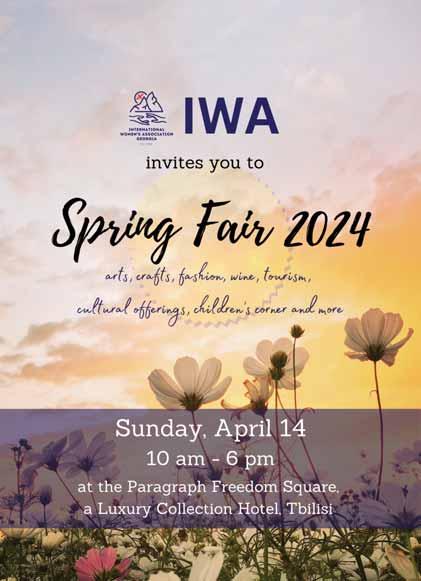 about their programs, an arts and crafts space, and a tourist section to learn about expats in Georgia and the different places to explore in the country outside of Tbilisi. IWA’s Public Relations chair Silvia Mera said there will also be Georgian wine and tea, plus food on sale for guests to indulge in.