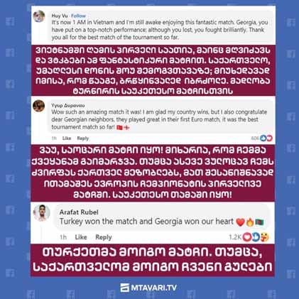 Temur Ketsbaia, the former Newcastle United midfielder and ex-head coach of the Georgian national football team: “I am proud of how the Georgian national team played. We played well and with quality. We are participants in a historic event and I believe we will play even better in the next matches. We passed our first test with flying colors. Thanks to everyone who made this day so memorable!"
