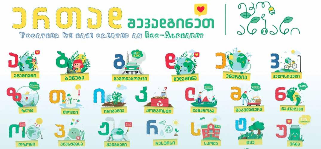 At the end of last year, the organization Keep Georgia Tidy (KGT) proposed to school pupils the idea of creating a joint EcoAlphabet and a special environmental competition. According to the rules, the pupils should come up with a word related to environmental protection and ecological threats, or an environmental message for each letter and draw a relevant image. As a result of their joint efforts, the first Eco-Alphabet was created, with the participation