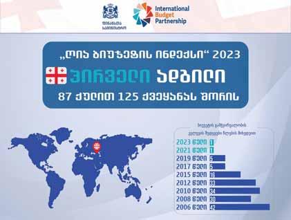 The Open Budget Survey 2023 stated that Georgia again ranks first among 125 countries in Budget Transparency. The Open Budget Survey also evaluates budget oversight and public participation, placing Georgia 5th out of 125 countries.