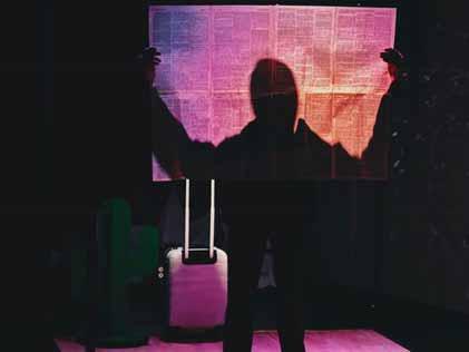 The production team constructs an environment that feels less designed than engineered: a chamber that resembles an elevator, a cube suspended between mechanical possibility and metaphysical implication. Set designer Mariam Songhulashvili crafts an interior where surfaces behave like membranes rather than objects; light ricochets along the edges with the quiet intensity of laboratory equipment. Achi Arghanashvili’s lighting sculpts time itself into visible substance — thin sheets of radiance, sudden compressions, long tidal glows. Uta Bekaia’s costumes function like temporal skins, shifting between the everyday, the ceremonial, and the biomorphic. Above all, the space is designed as a resonant chamber: the theatre becomes a diaphragm, and Lasha Natenadze’s sound direction turns it into an organism that inhales and expels frequencies with startling tactility. Nothing here exists as decoration; the entire visual field behaves as a single temporal device.