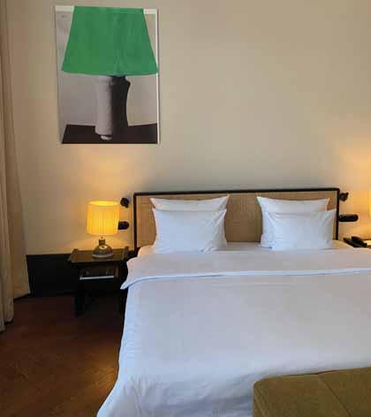 nor their laws and belonging only to the upper eternal realms; and that old façades have to be torn down like scraps of paper to be reused as blindfolds to shut off the outer world in order to open up true inner visions, as the protagonists did on stage. Speaking of this, the remarkable stage designs by Johannes Schütz contributed significantly to the whole concept. It was all about touching the spectator’s soul, if such a thing ever exists, emotionally. As for meaning, it differs from epoch to epoch according to changing values, prevailing fashions, beliefs, cultures, and conventions. Settings and interior designs play a significant part in our perception of things not only in the arts but in real life, especially when fine arts intervene in semi-private and public spaces like hotel suites, foyers, corridors, and spaces for eating and drinking. Berlin’s worldfamous reputation as a metropolis for contemporary art has over decades attracted some of the most prominent blue-chip and award-winning artists who live and work here. Some of these, alongside superstars like Damien Hirst and Rosemarie Trockel, to name but a few, are beautifully fitted into the Château Royal Berlin boutique hotel in the heart of the city center. Ninety-three international artists who have earned names and fame on international markets and museum scenes have been tastefully selected by Kirsten Landwehr, head of the art department, for the purpose of giving this hotel its extraordinary aura. The concept could not fit better, as it gives this historical edifice—formerly the quarters of the menacing ex-Stasi, the GDR Ministry of State Security—an “edgy” look. Art hotels are very trendy all over the world now, but Château Royal has managed to get in on a whole new level by combining its sumptuous interiors and luxurious furniture with provocative artworks that build contrasts and raise the curiosity of spectators. Needless to say, a couple of Georgian artists who made it into this honourable collection really hit it and truly added extra charm to the royal hotel ambience. The contradiction between the opulent hotel context and the artistic interventions—some disruptive, others hardly noticeable, as if left over by chance, wait-