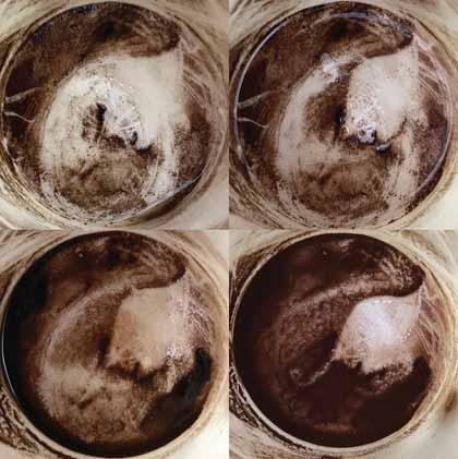 EACH STAIN IS UNIQUE, YET THE RITUAL REPEATS DAILY. WHAT MATTERS MORE TO YOU: THE UNIQUENESS OF THE COFFEE IMAGE OR THE MONOTONY OF THE ACTION OF CAPTURING IT? The uniqueness. Three tries daily still don’t give consistently great results, but it’s not worth getting frustrated with the low returns. Better simply to rejoice when a masterpiece pops up. And to use the right kind of coffee! Forget instant,
