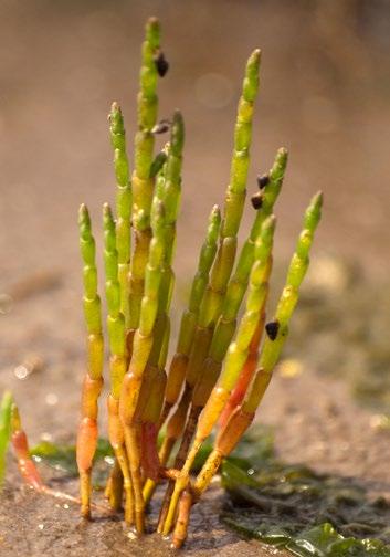 Hvis du møder en spøjs lille, grøn, kaktuslignende fætter (uden torne) lige der, hvor vaden ender, og marsken begynder – så smag på den! Det er kveller, og den er spiselig, sprød og salt i smagen, så du kan fint tage lidt med hjem og blande det i salaten til middagen. Kveller tilhører salturtfamilien og kan vokse på saltholdig bund og optage vand med højt saltindhold. Det kan den kun, fordi den fortynder saltvandet i sine blade (der ligger helt tæt op ad stænglen og ikke ser ud som blade på andre planter). Derfor er bladene tykke og saftfyldte. Ligesom andre af Vadehavets planter er kveller god til at holde på noget af det sediment, der ved højvande bliver ført med ind over det område, hvor planten holder til. Det gør, at endnu flere planter kan finde fodfæste, og på den måde bidrager kveller til, at marsken vokser sig større.