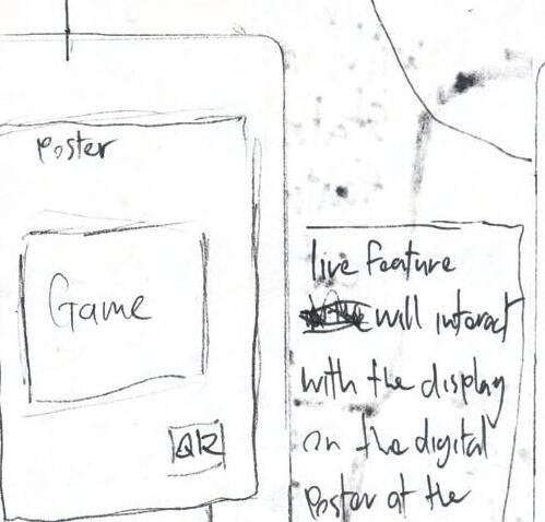 The initial ideas are based on posters in the station that users could interact with by uploading pictures of a quick drawing completed on their phone to the digital poster in their station. This was to create some pass-time fun for the user while also connecting people within the station. In a similar format, another idea was to display puzzles (e.g.. sudokus) on a digital poster so users could quickly photograph the poster and complete the puzzles on their phone while waiting for on the train.
