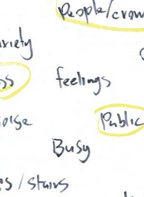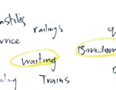 To find the issues that people might have in train stations I began by empathizing with the user, the first step of my chosen methodology. Firstly with myself and my past experiences of train stations, then with others, friends and family. I also spent time at my local train station photographing it as well as analysing people as they passed through. Following this, for secondary research, I looked at online reviews for train stations and created a list of words that are linked with the subject matter.