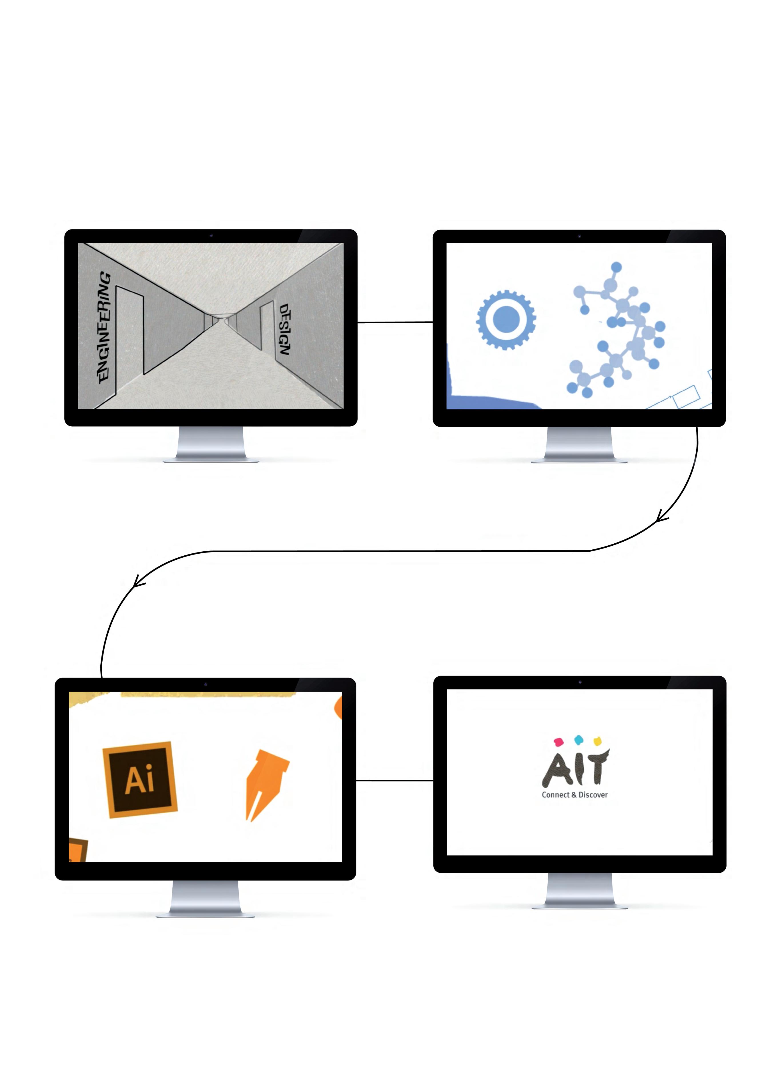 As this is a promotional piece, the first stage for this project was to find out what defines this department. To empathize with the client and gain some insights I began by looking at the AIT website, reading from the prospectus, looking at the courses offered and exploring their branding and content on social media to get a better feel for the whole institutes, and more importantly the department’s identity.