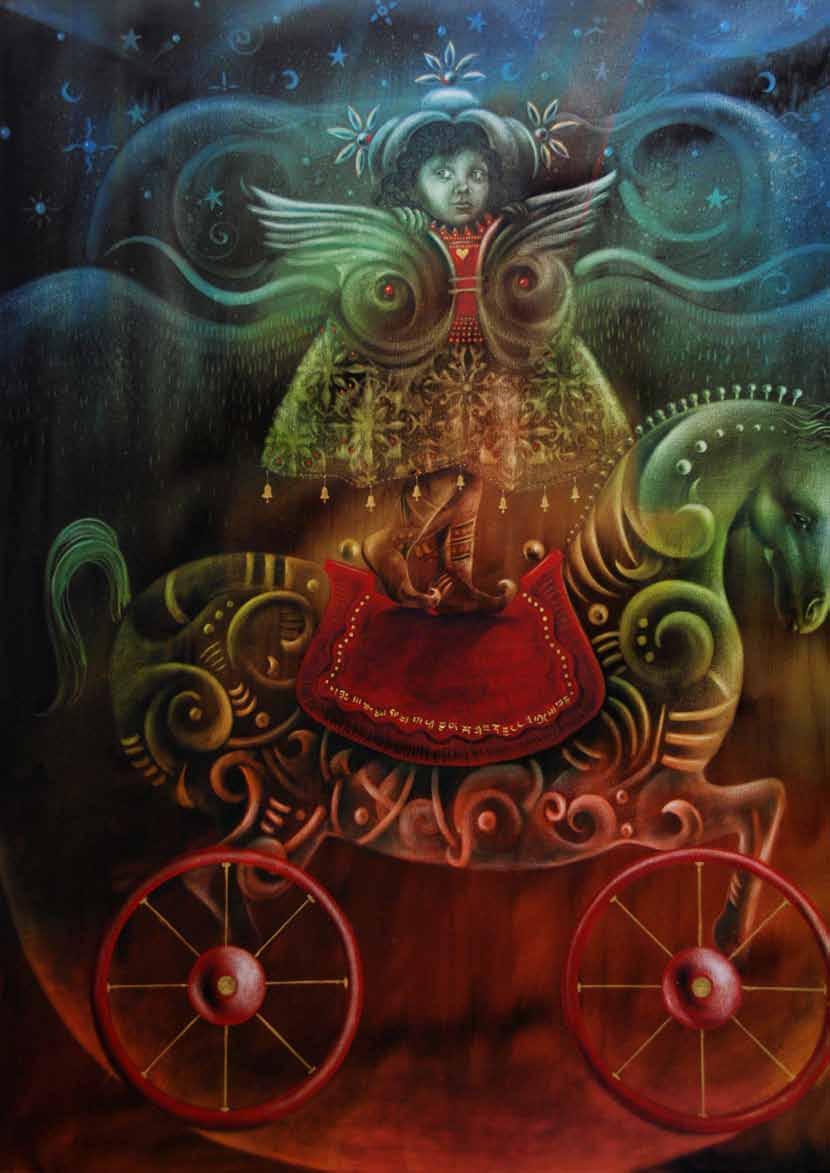 Página Anterior Un ángel visita Tacachi Mixta sobre tela. 150 x 120 cm.