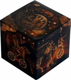 en un circuito interiorista. Suerte de escritura de cartas amorosas para mujeres figuradas, inasibles. Nacen de manchas gestuales, luego atrapan y definen formas y figuras provenientes de la milagrería del artista. Al verlas desparramadas, sugieren un prontuario cabalístico (caligrafía china atiborrada de adivinanzas). Impacta la pulcritud del fondo blanco fusionada a la gestualidad delirante de las manchas de brea. Luego, las primorosas cajas que trabaja para encerrar estos pequeños prodigios. El artista logra que den la sensación de tapas que guardan recónditos tesoros o devocionarios de tiempos inmemoriales. Al espectador no le queda otra opción que unirse al ritual. Son cajas mágicas. Porciones misteriosas. Trípticos clausurados por algún monje bibliómano medieval. Cubos, biombos que ocultan algo y queremos forzosamente descubrir. Y las ideas de Porras siguen su incesante herranza. Porras, dentro y fuera de su taller, es un artista perplejo en la recreación de ese personaje que siempre quisimos ser y que nunca logramos personificar: Ludovico, el niño que llevamos dentro. Él seguirá auscultando historias, mapas, fábulas, signologías, lenguajes y enigmas de la antigüedad y del mañana.