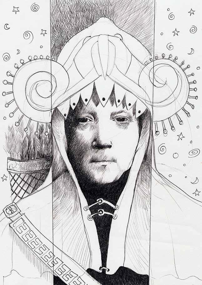 Inmaculada fascinación. Mixta sobre tela. 65 x 65 cm. Página Anterior Capicua menguante Mixta sobre papel. 120 x 90 cm. Bufón del tiempo. Mixta sobre tela. 100 x 80 cm. Virgen música del sol. Mixta sobre tela. 100 x 80 cm. Página Siguiente Fascinación Mixta sobre tela. 90 x 120 cm.