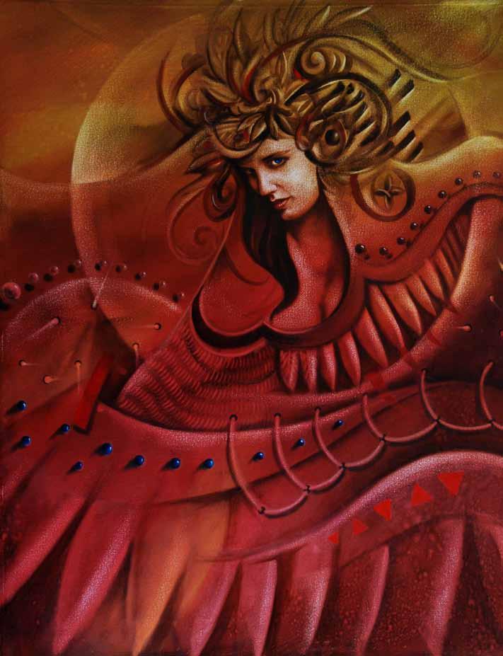 Conquistadora del Fabulador. Mixta sobre tela. 100 x 100 cm.