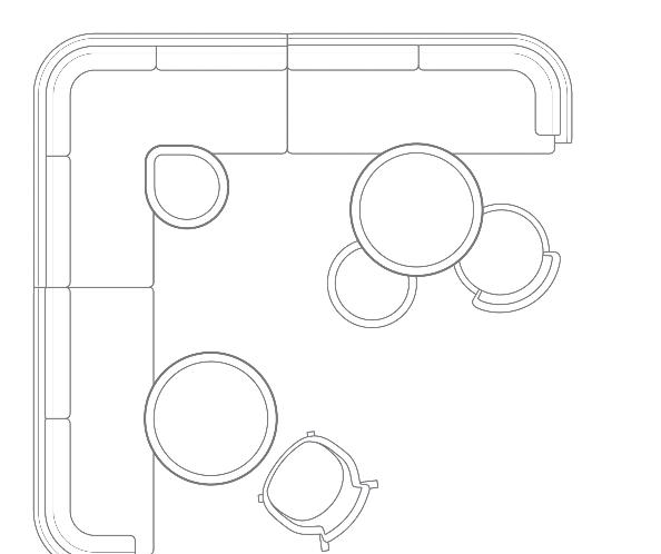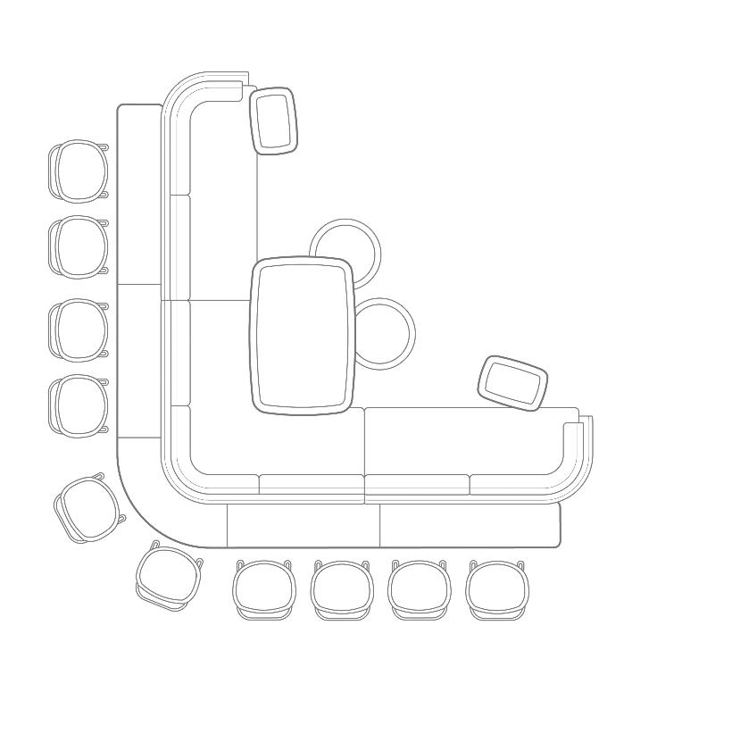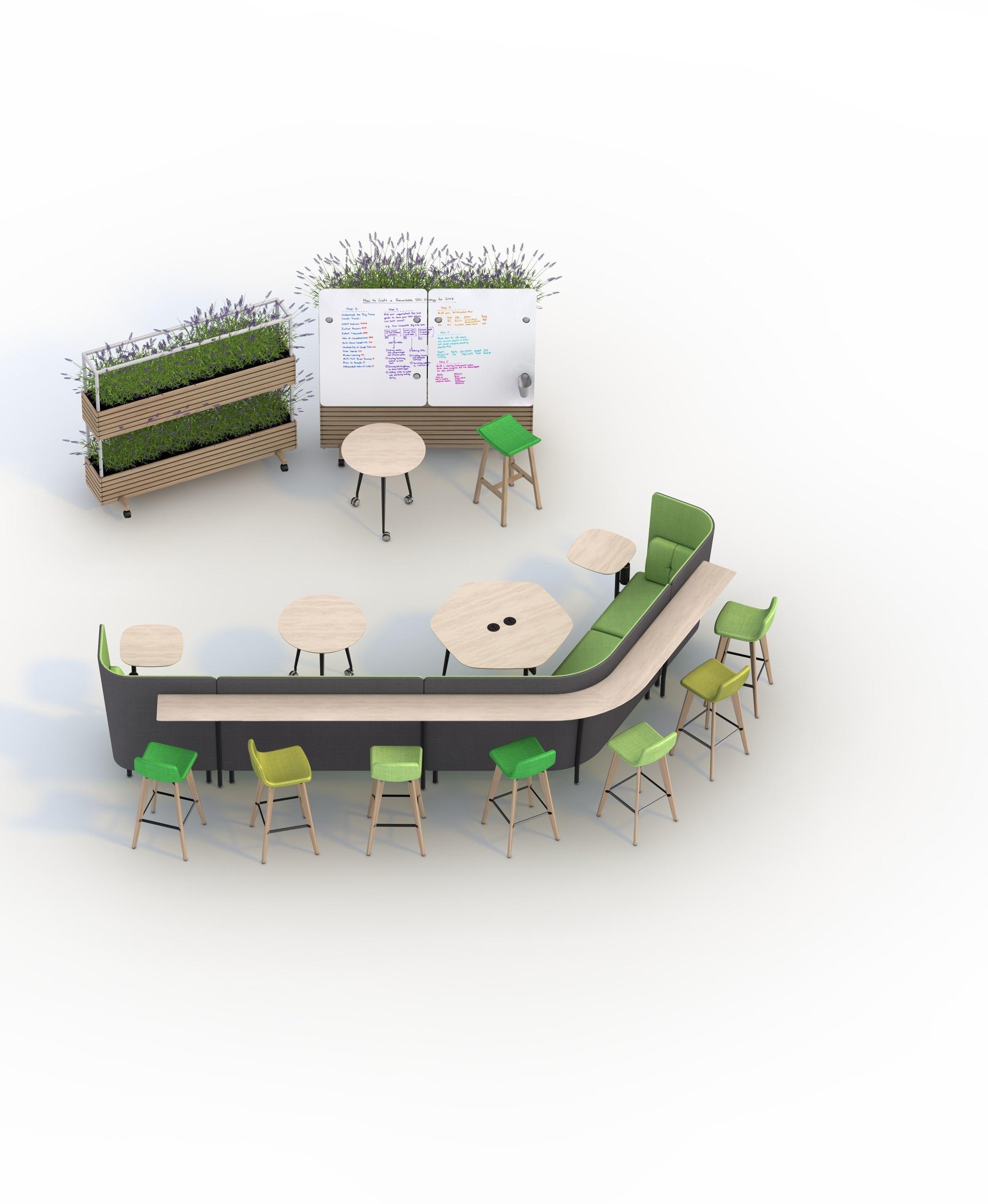 This ability to aggregate a wide landscape of diverse collaborative furniture into focused and productive Hybrid working typologies (as illustrated throughout this brochure), has now been