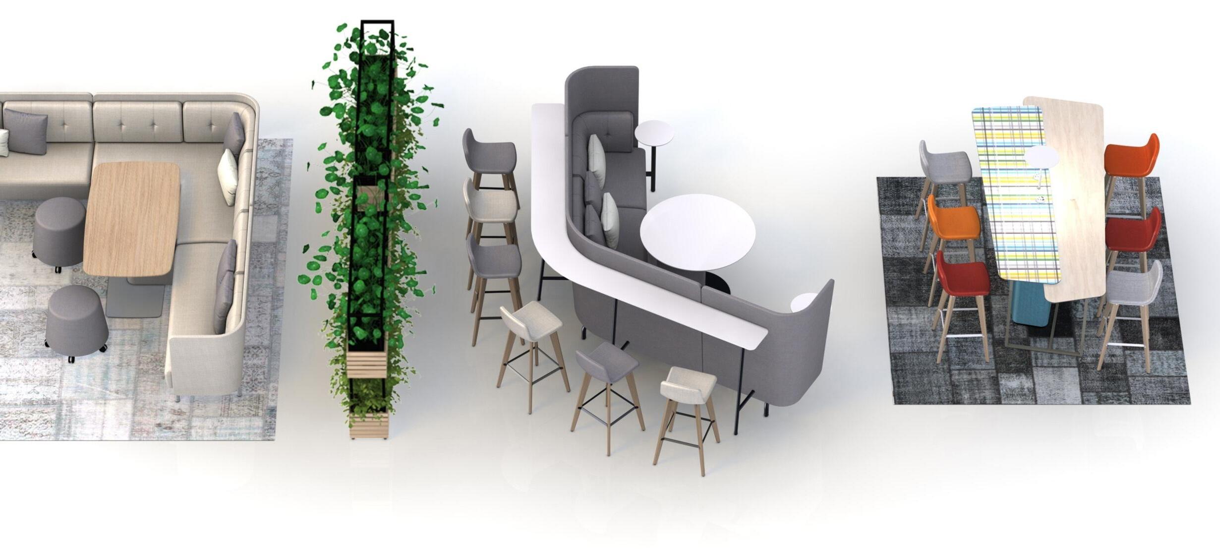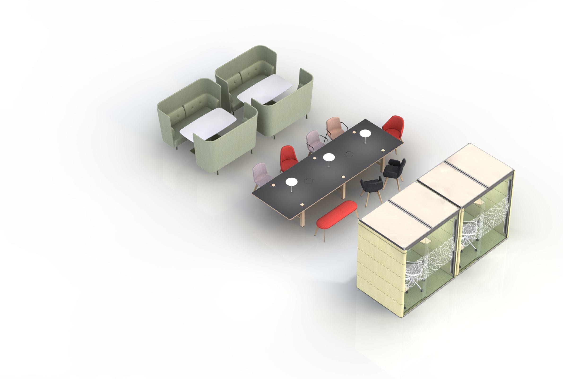 Hybrid is Hard – our new workday reality, with some of us being present and some of us being on screen during our meetings, is addressed with these new fur niture architypes, where design is used to bring enhanced connectivity and a better sense of presence and collaboration.