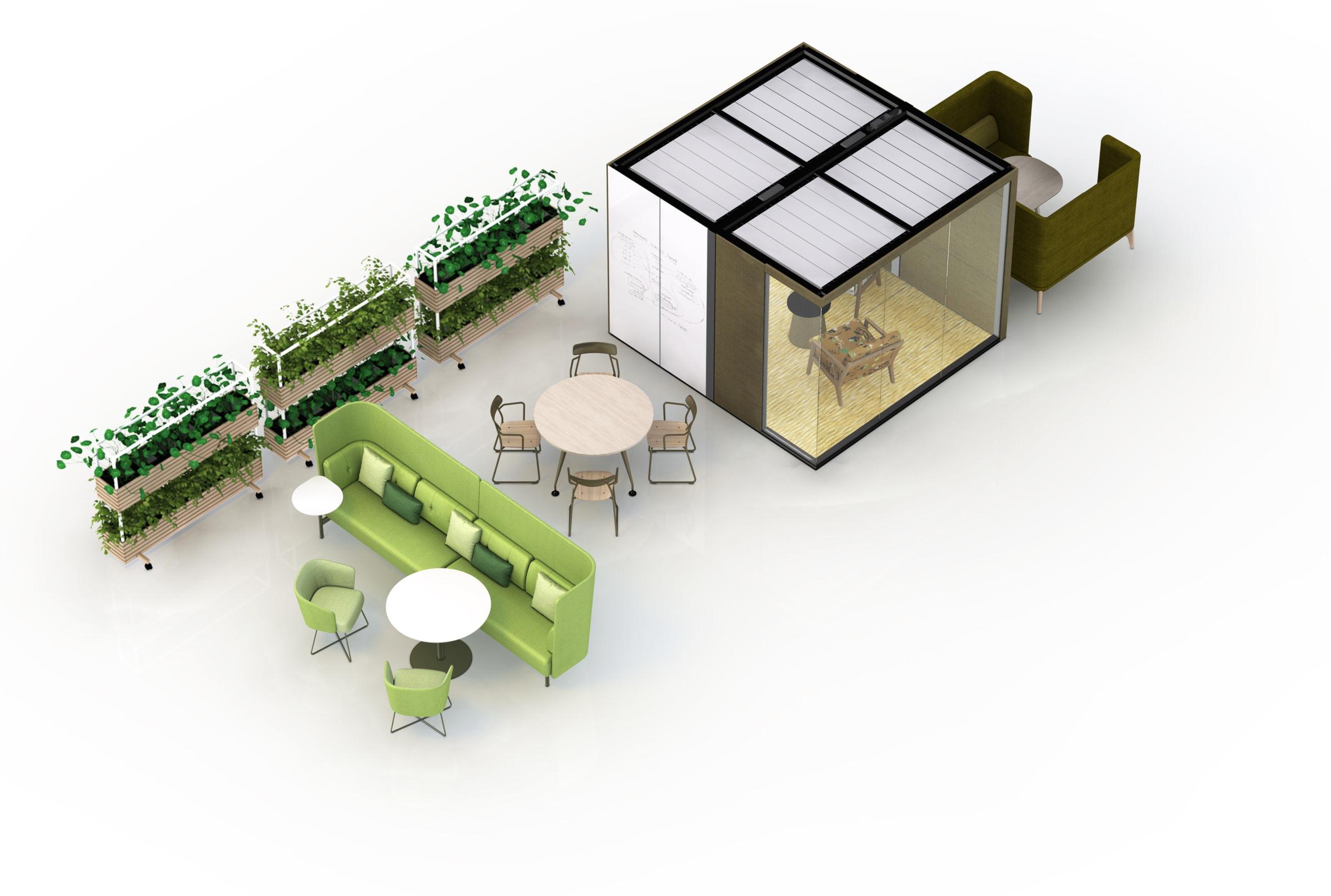 Pop-Up/Pop-Down are our new super flexible workspaces that can seamlessly transition from one type of configuration to another, enabled with a new mix of adaptable architectural and mobile fur niture typologies