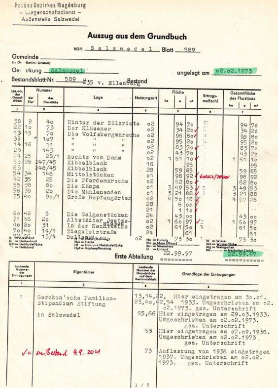 [1] „Die Familien-Stipendien-Stiftung des Domsyndicus Nicolaus Gercken“ von E.O. Wentz von 1940, kriegsbedingt nicht verˆffentlicht, ausgewertet in [14]