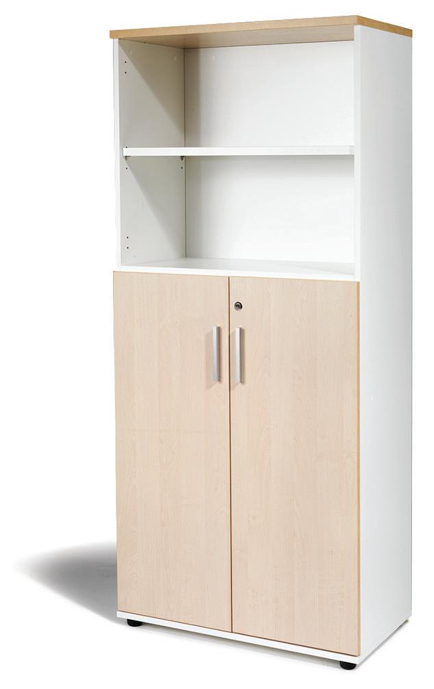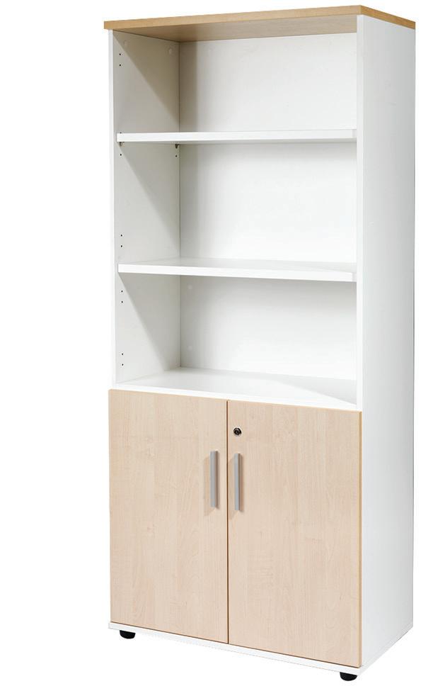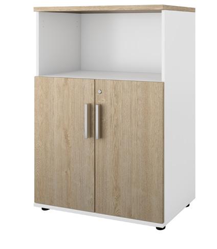 Sätt stilen med förvaring i två olika höjder. Välj själv vad du vill visa upp eller gömma undan bakom dörrar i vitt, björk eller ek med kraftfullt lås. Stomme i vit eller grå laminat.