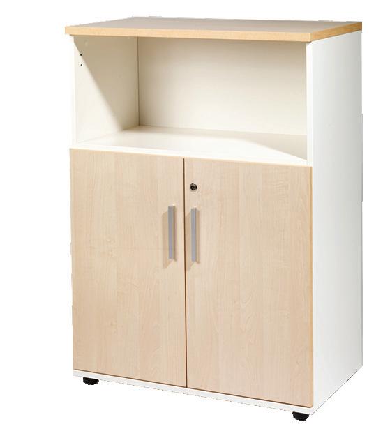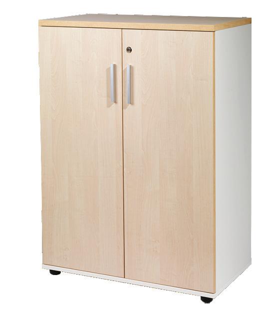 Multifunktionellt stilrent och låsbart skåp som slukar mycket och skärmar av mellan skrivborden. Öppningsbart från två håll. Välj mellan vitt, björk och ek. Levereras monterat och klart.