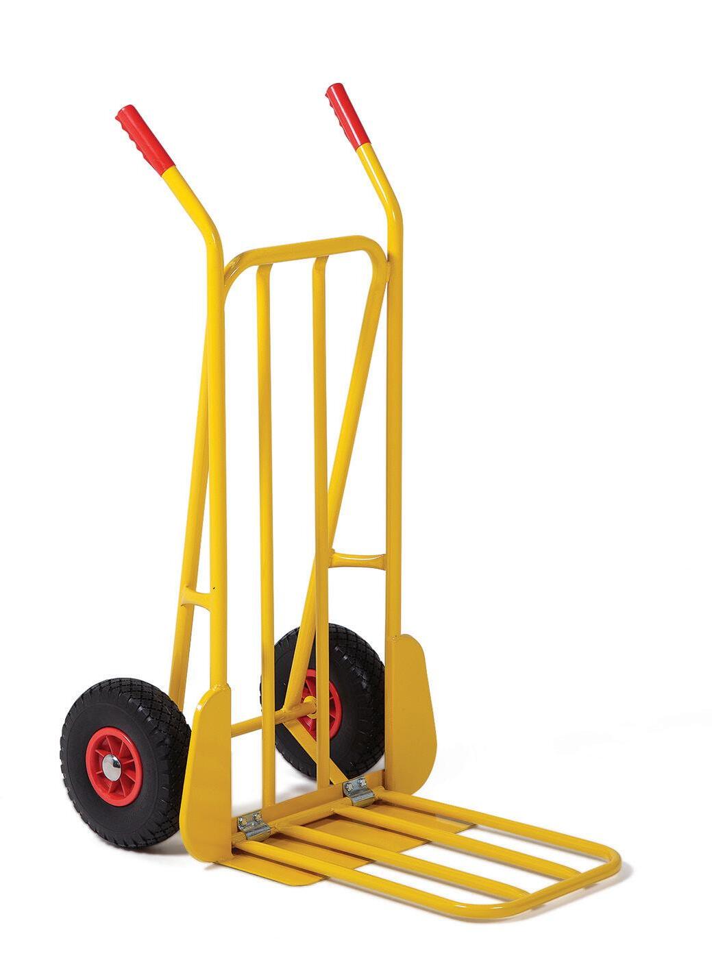 Spara kroppen och låt pirran jobba. Stadig kärra med punkteringsfria hjul och extra stor utfällbar lastplatta med max lastkapacitet på 250 kilo.