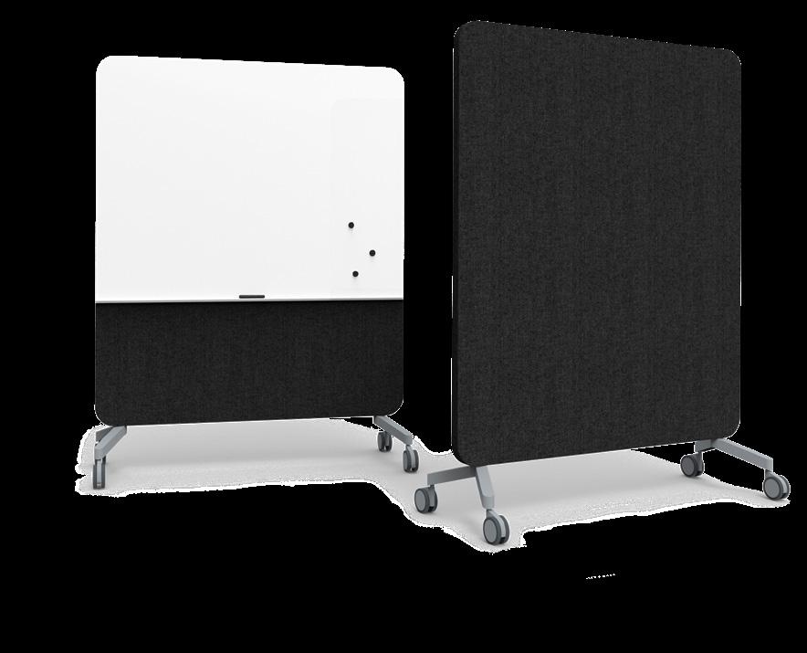 Ljuddämpande mobil whiteboard i två olika storlekar och flera fina färgkombinationer. Skrivyta i glas och en ljudabsorberande fyllning för en skön mötesmiljö. Levereras med hjul och fötter.