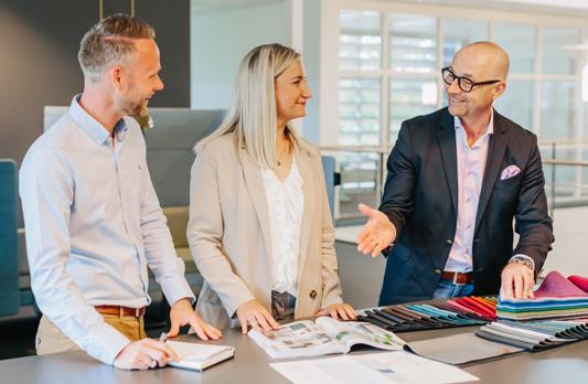 “Tutustu Gerdmansin laajaan ja monipuoliseen toimistokalustevalikoimaan. Oli mukavaa saada apua kokonaisuuden luomiseen ja löytää punainen lanka – tai pikemminkin sininen lanka – koko tilaan. Olemme erittäin tyytyväisiä tulokseen”, kertoo Tomas Nilsson. (Kiinteistövälittäjä, HusmanHagberg)