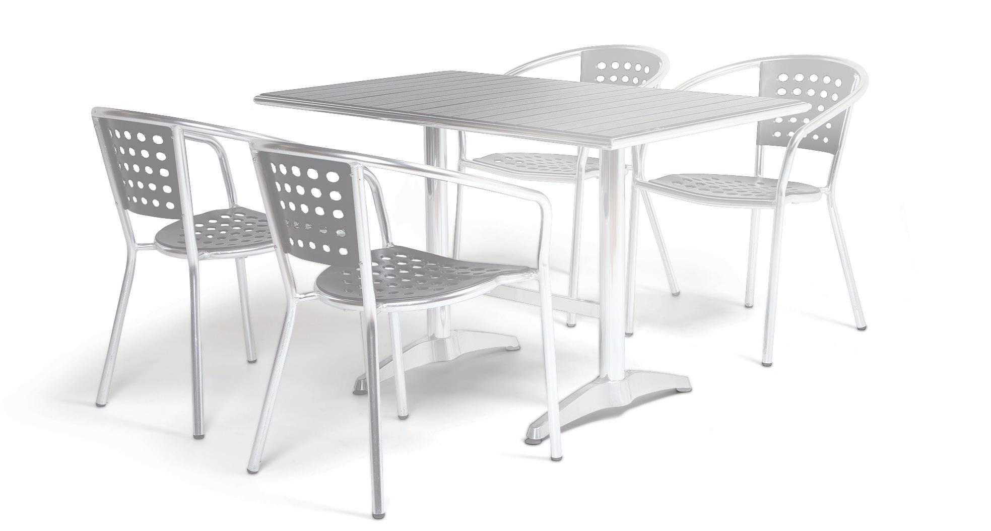Kevyt alumiininen tuoli joka sopii ulkotuoliksi terassille, parvekkeelle ja pihalle. Kestää hyvin eri säät. Vakaa istua ja samalla kevyt ja helposti siirrettävä. Pinottava. Istumakorkeus 410 mm, kokonaiskorkeus 760 mm.