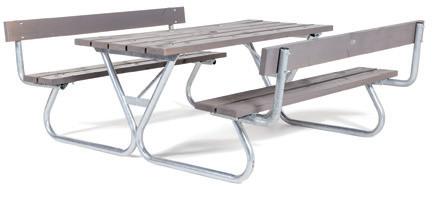 Moderni istumaryhmä ulos, kestävällä kuumagalvanoidulla teräsrakenteella. Valitse materiaalien väliltä; luonnon puu tai komposiitti kierrätetystä muovista. Mitat: P1770, L1600, K730 mm. Saatavilla versiot ilman selkänojaa tai selkänojan kanssa. Toimitetaan osissa.