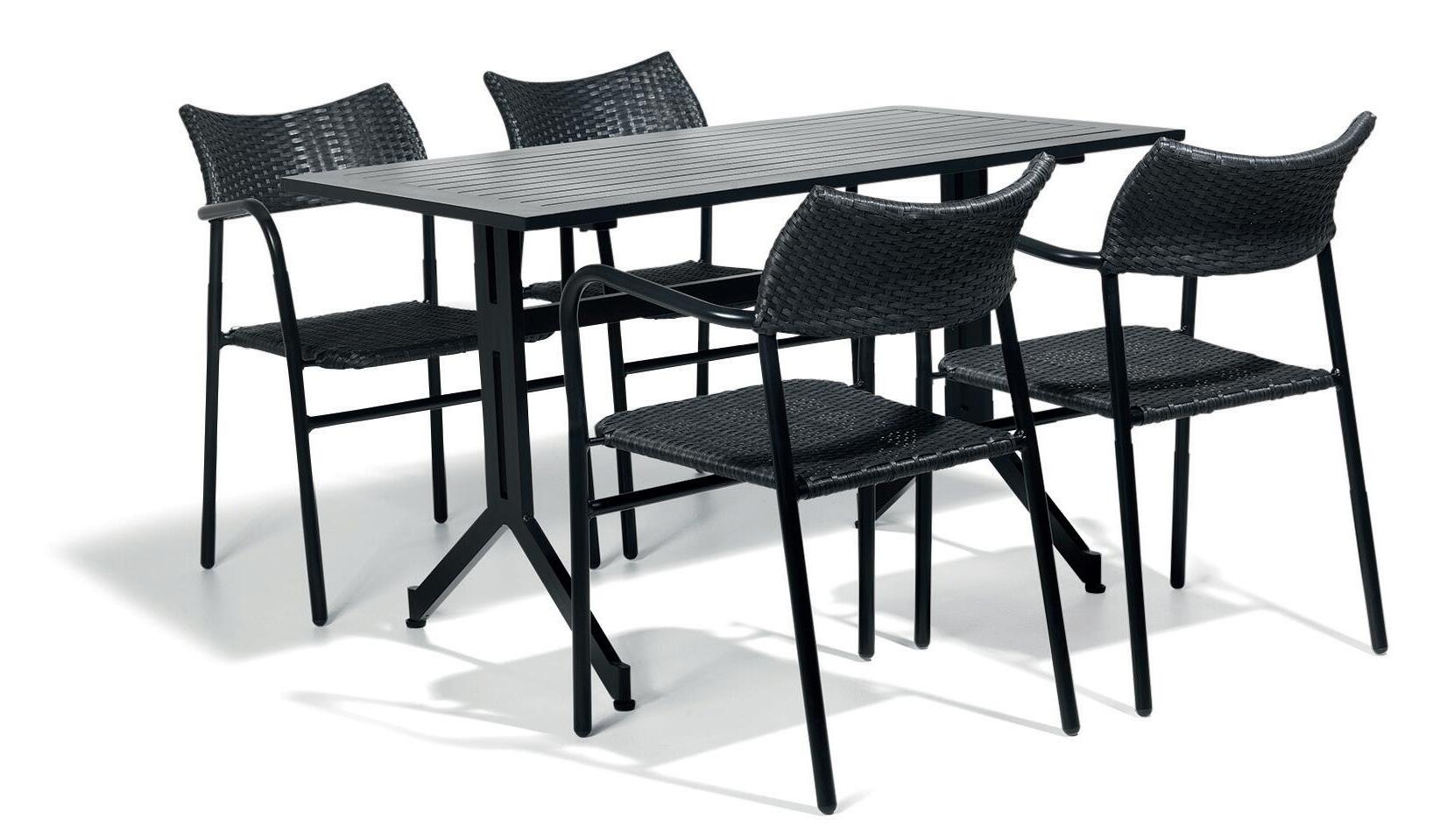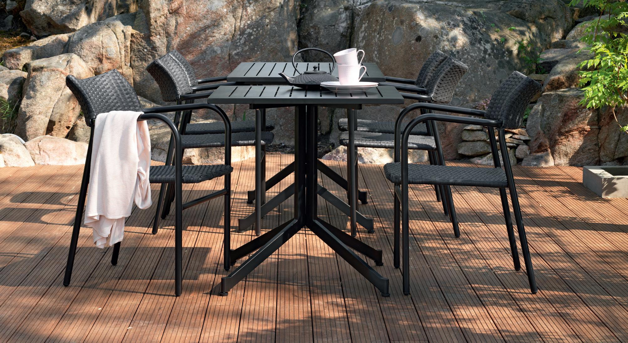 Huoltovapaa pöytä, jonka pöytätaso ja runko ovat mustaa alumiinia, joka kestää pohjoismaalaiset sääolosuhteet. Korkeus 720, leveys 1200, syvyys 700 mm. Musta.