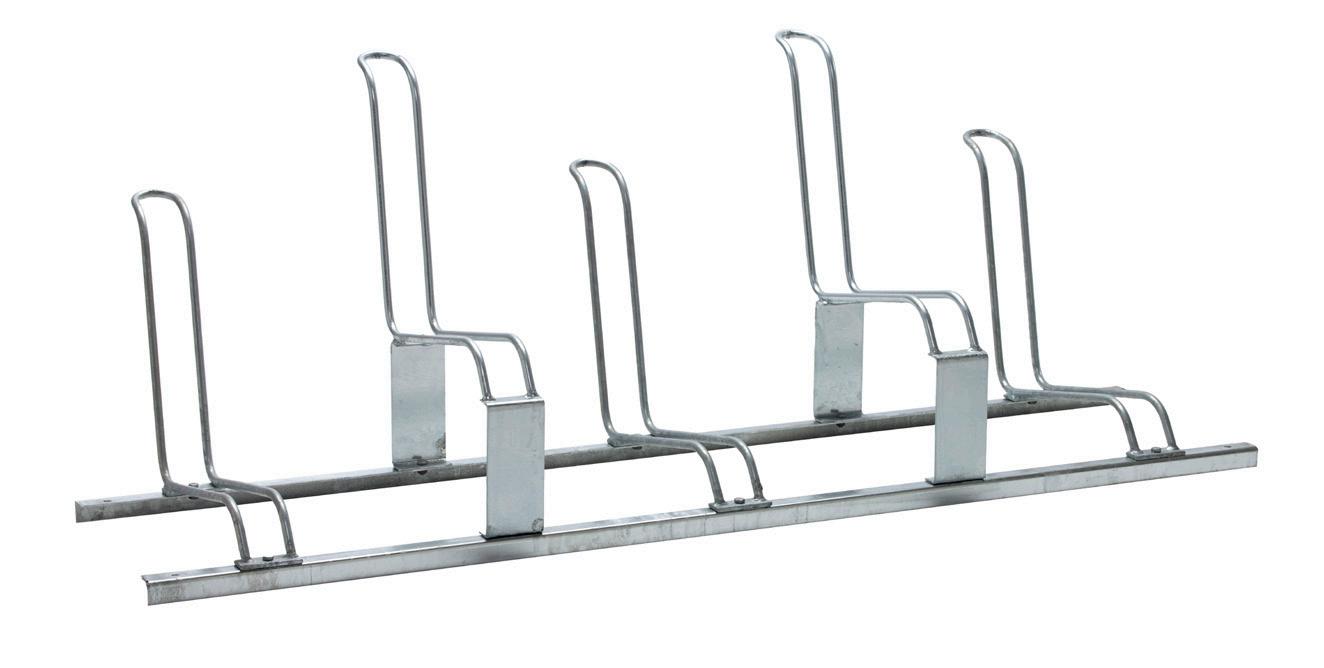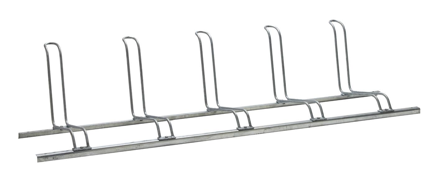 Tukeva ja vakaa pyöräteline viidelle polkupyörälle. Yksinkertainen hitsattu malli. Kulmaraudasta valmistettu runko, joka on vahvistettu maanpinnan tasolta. Valmistettu kuumasinkitystä teräksestä, leveät pyöränpidikkeet (50 mm). Vasen, oikea tai suora sisäänajokulma.