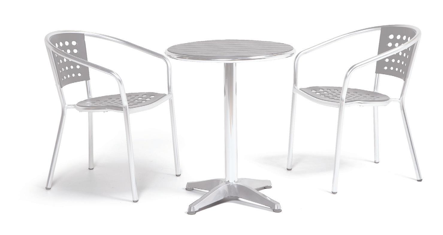 En lett, solid og rust- og vedlikeholdsfri stol til kafeer, uteserveringer og terrasser. Stabil ,men lett å flytte rundt. Stabelbar. Sittehøyde 410, totalhøyde 760 mm.