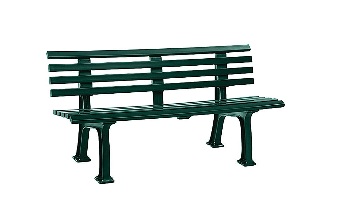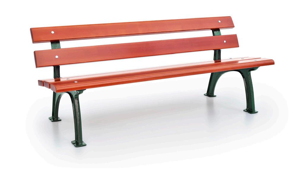 Med ribbor i massivträ och ram i gjutjärn, pulverlackerad i grön färg. Rejäla sits- och ryggbrickor i lackerad gran. Den här parkbänken är av högsta kvalitet och är lätt att underhålla. Sitthöjd 400, sittdjup 580 mm. Totalmått LxBxH 1800x580x700 mm. Levereras omonterad, enkel att montera. Bänken är även förberedd för förankring. Passande för offentlig miljö, parker med mera. MODELL