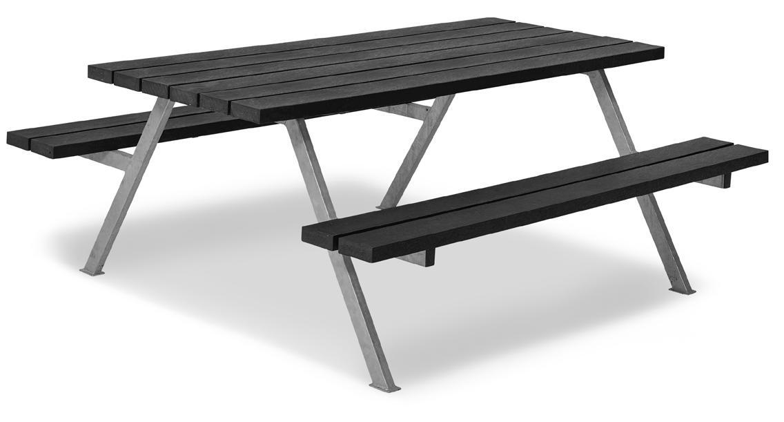 Rymligt och robust bord med fasta sittbänkar. Förzinkat underrede i stål med trädetaljer i brunlaserad furu. Levereras omonterad. Finns i flera färger. Bordsskivan storlek 1500x700 mm. 2 sittbänkar med rygg, längd 1500 mm. Totalbredd 1850 mm.