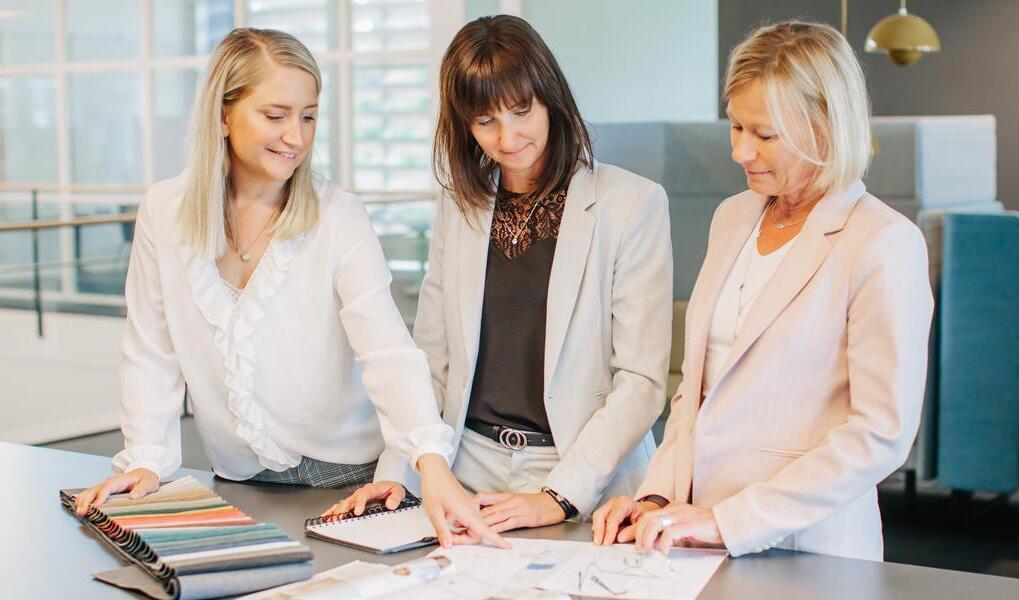 Vi skissar fram en miljö med möbler, inredning och detaljer som fyller ert behov. Du får vårt förslag i en genomarbetad presentation, en mood board med en bred palett produkter, tyger och material att välja bland.