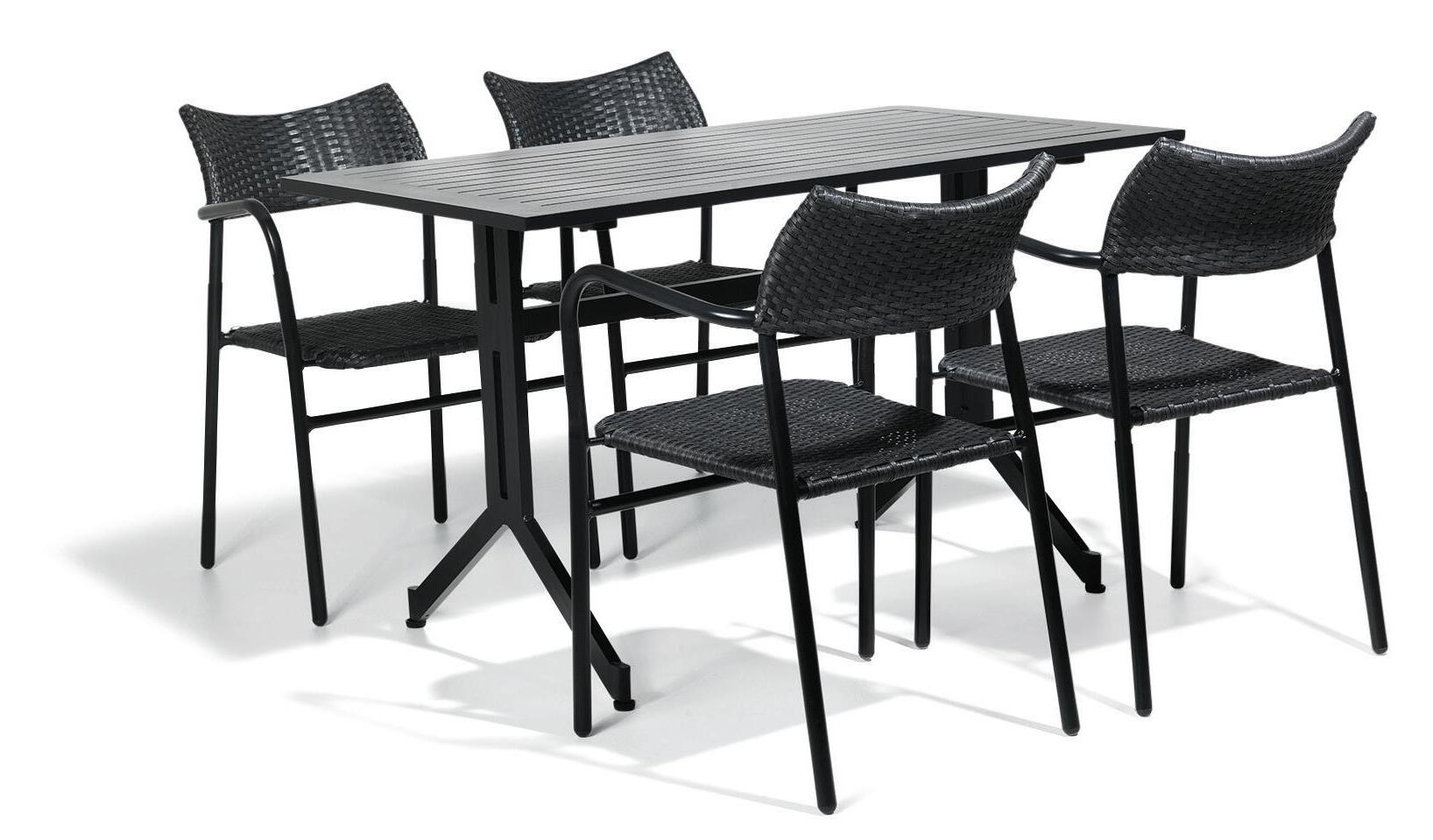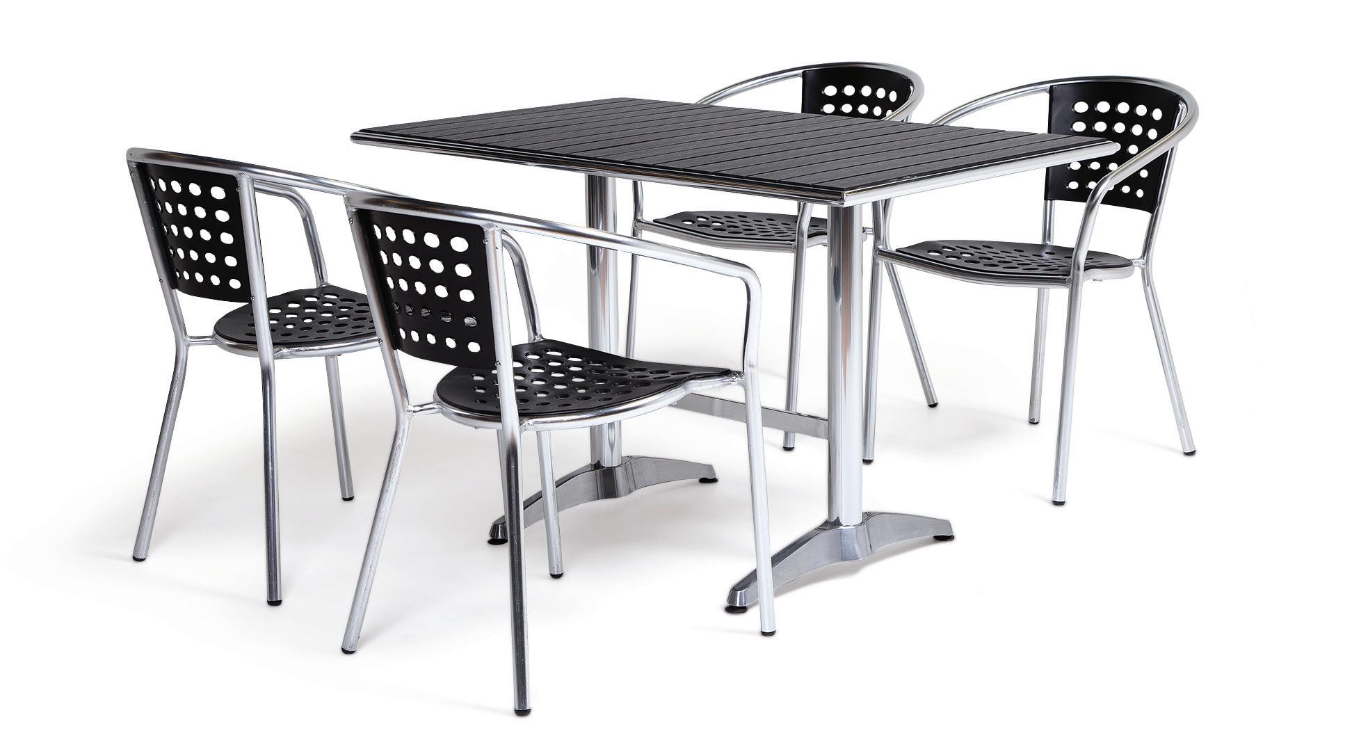 Underhållsfritt bord med skiva och stativ i läcker svart aluminium, som tål det mesta och passar vårt nordiska klimat. Höjd 720 mm. 1200x700 mm. Svart.