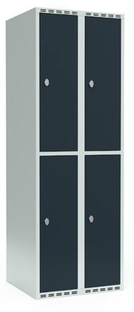 Smarte skap som kan bygges ut og monteres sammen på alle sider. Finnes i tre størresler og seks fargekombinasjoner. Pulverlakkert stålstamme i lysegrå. Leveres med sylinderlås med to nøkler. Benstativ med innstillbare føtter finnes som tilbehør.