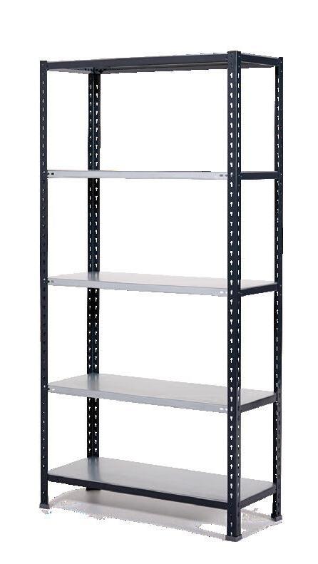 Stabil stålhylle med hylleplater av trefiber. Enkel å montere helt uten skruer. Grålakkert (RAL 7016) i Epoxylakk. Hyllen er utstyrt med forsterkningsbjelker under hylleplatene. Hyllen kan monteres i enten to halvseksjoner i høyden eller som en helseksjon. Kan kombinere hel og halvseksjoner med festebrakett. Hylleplatene kan flyttes.
