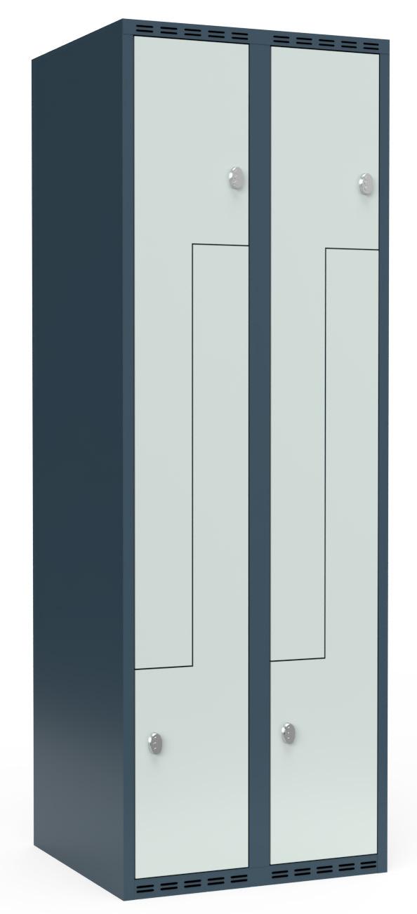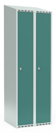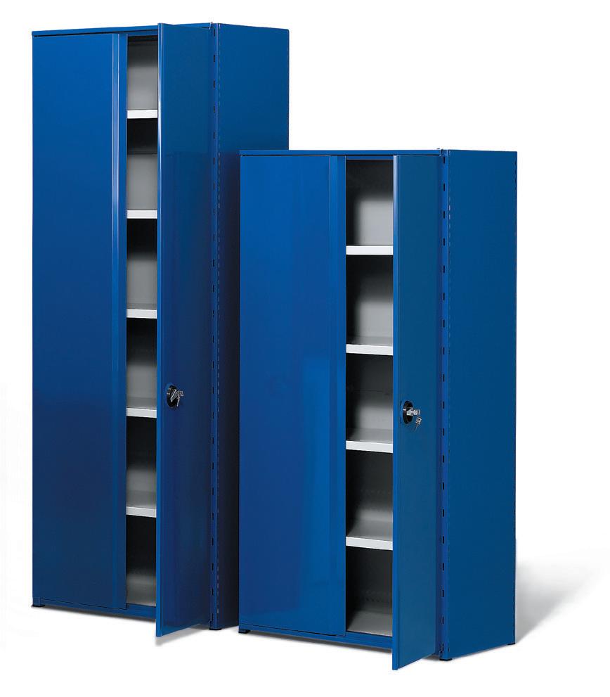 Helsveiset kvalitetsskap i moderne design, passer i de fleste miljøer. Dører med doble langsgående forsterkninger, gummidempere og sveiset dørstopp som tåler påkjenninger. Gjennomtenkt ventilasjon med bra lufting. Flat bunn gjør at skapet er enkelt å rengjøre. Låsbart med klinke for hengelås som standar. Finnes i flere dimensjoner, farger, understell og tilbehør.