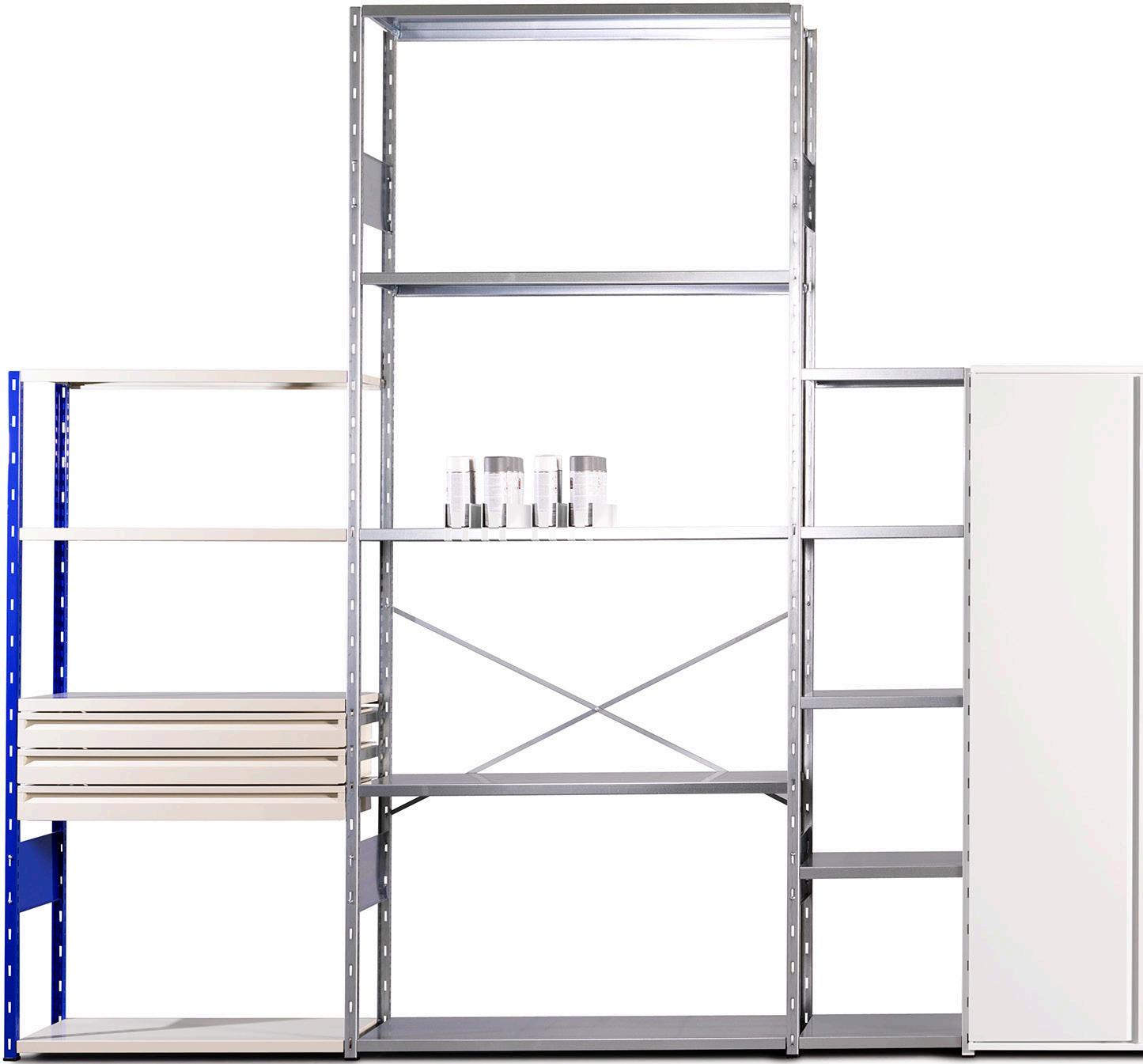 Et fleksibelt hyllesystem av galvanisert stål med mange bruksområder. Lav egenvekt – høy belastning, 135-350 kg/hylleplater. Flyttbare bjelker, 33 mm:s intervall. Hylleplater for ulike arbeidsmiljøer. Gavlene leveres montert, bærebjelker og metallføtter inngår i hver seksjon.